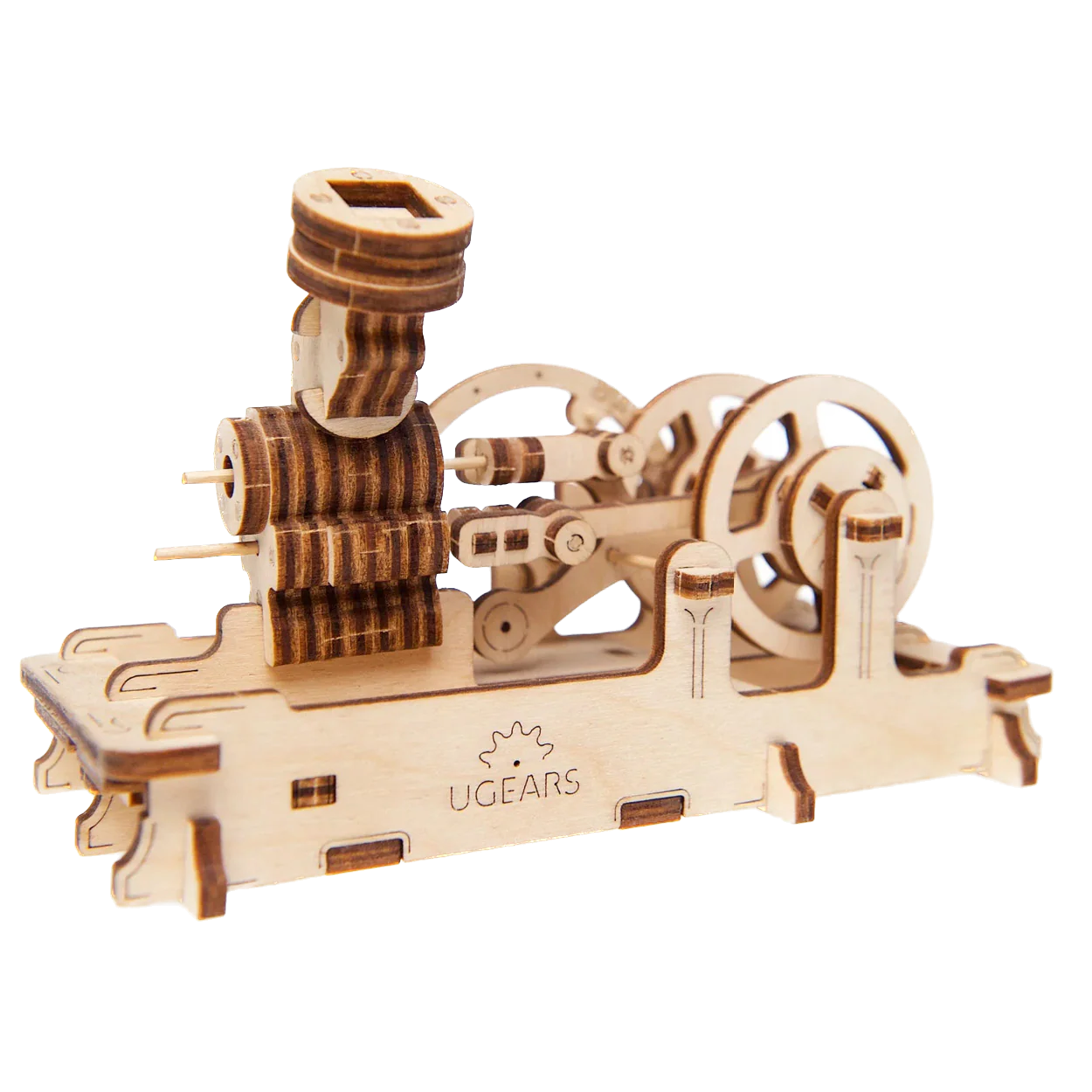 The UGEARS Pneumatic Engine may be small, but is definitely mighty, giving a sneak peak inside a functioning steam engine. The model Pneumatic Engine comes to life by either having the user blow into a special socket, or by using an ordinary air balloon. All the parts move as if they were inside a real steam engine, the amazing thing is – it’s built entirely out of plywood! The Pneumatic Engine comes with its own, built in air pressure tachometer, and two small compartments for storing ā€˜spare parts’.